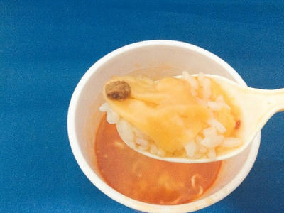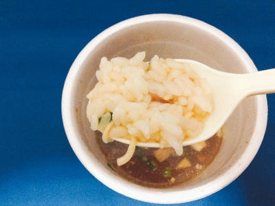 こちらは熱湯3分の調理時間。熱湯3分で調理後、麺だけをすすっていざぶっこみ飯モードへ。