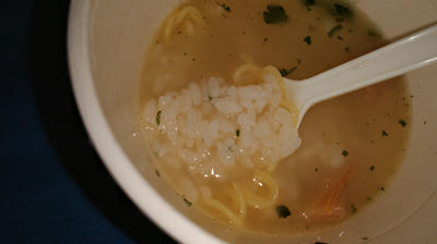 鶏塩スープだけであればちょうど鶏雑炊といった感じでマッチしているのですが、梅ペーストが時度はいることで意外と邪魔します。