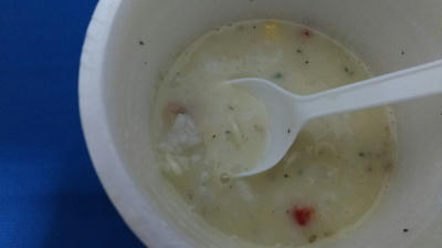 さて、ぶっこみ飯に戻りますが、本当にシチュー&ご飯といった感じです。程よいとろみといい、カルボナーラの風味といい、まったくそんな感じです。